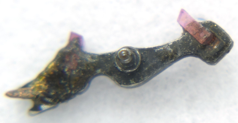 There is a special feature regarding the lever. For reasons of space, it has to be installed laterally, which means that the anchor fork and pallets are not in a line, but the fork is in the extension of one of the pallets (unfortunately, it is rather difficult to see in the picture).