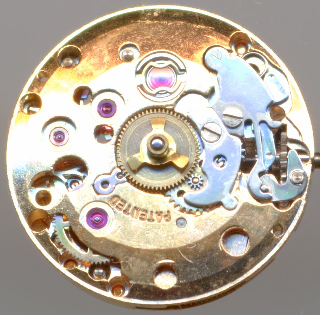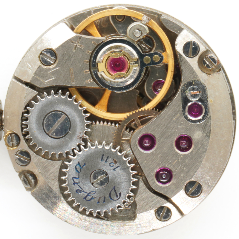 Here too, the modern, space-saving gear train arrangement was used, in which there is no central minute wheel, but the hand mechanism is driven via the pinion of the third wheel.