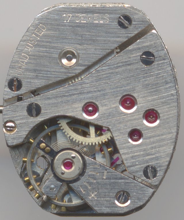 It is a true pallet lever movement with 17 jewels (one on the dial side(!) for the escapement wheel).