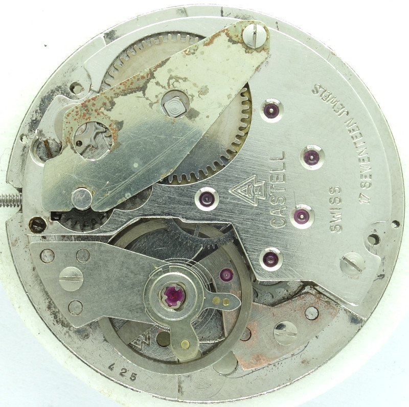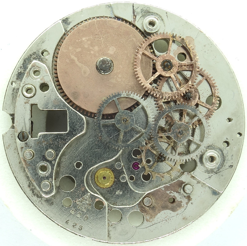 The caliber Amida 425, which is part of the caliber series Amida 420, is a 11 1/2 ligne pin lever movement of fair quality. It is a relative of the pallet lever caliber series Amida 710.