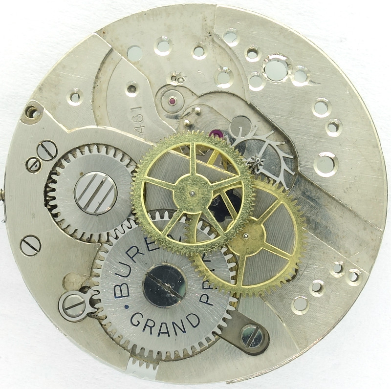 This label carries also the 11 1/2 ligne caliber Buren 481 shown here, which has got a center seconds indication and very elaborated and simple mechanism to change the mainspring barrel.