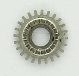 The very small diameter requires, that the winding pinion is housed not at the outer edge of the base plate but a little more inside for stability reasons. But that’s too far inside for the crown wheel and so, the crown wheel has got on its inner side a an additional gearing, which is in engagement with the winding pinion.