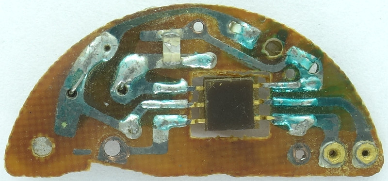 The very large quartz resonator reminds of the first days of swiss quartz movements; in 1977 these monsters where obsoleted by much smaller tuning-fork-shaped quartz oscillators.