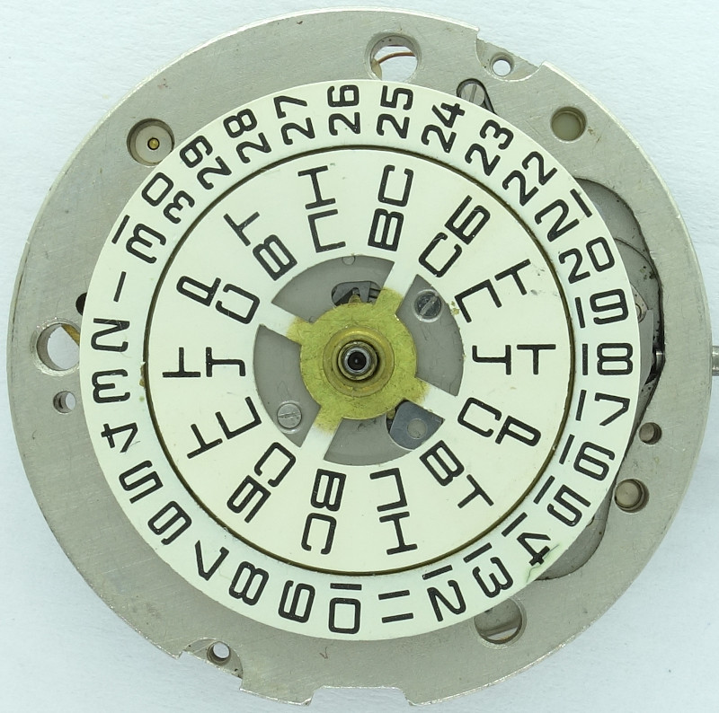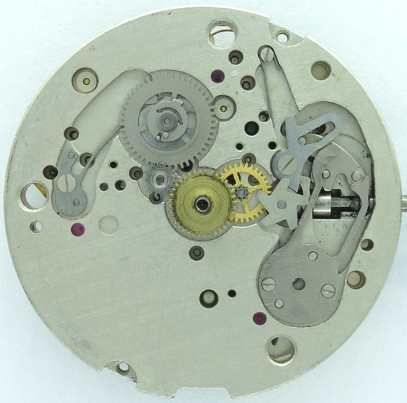 Technically, with its four-coil stepper motor, which makes only a 45° turn per second, it reminds of the first generation of swiss quarzu movements with stepper motor, such as e.g. the ESA 9180, which means also, that when it came on the market in 1977, it was already technically obsolete, since the far more modern swiss and japanese quartz movements such as the ESA 9361 use the Lavet stepper motor with a 180° turn per second. This type of stepper motor is used until today in virtually every analog quartz movement.