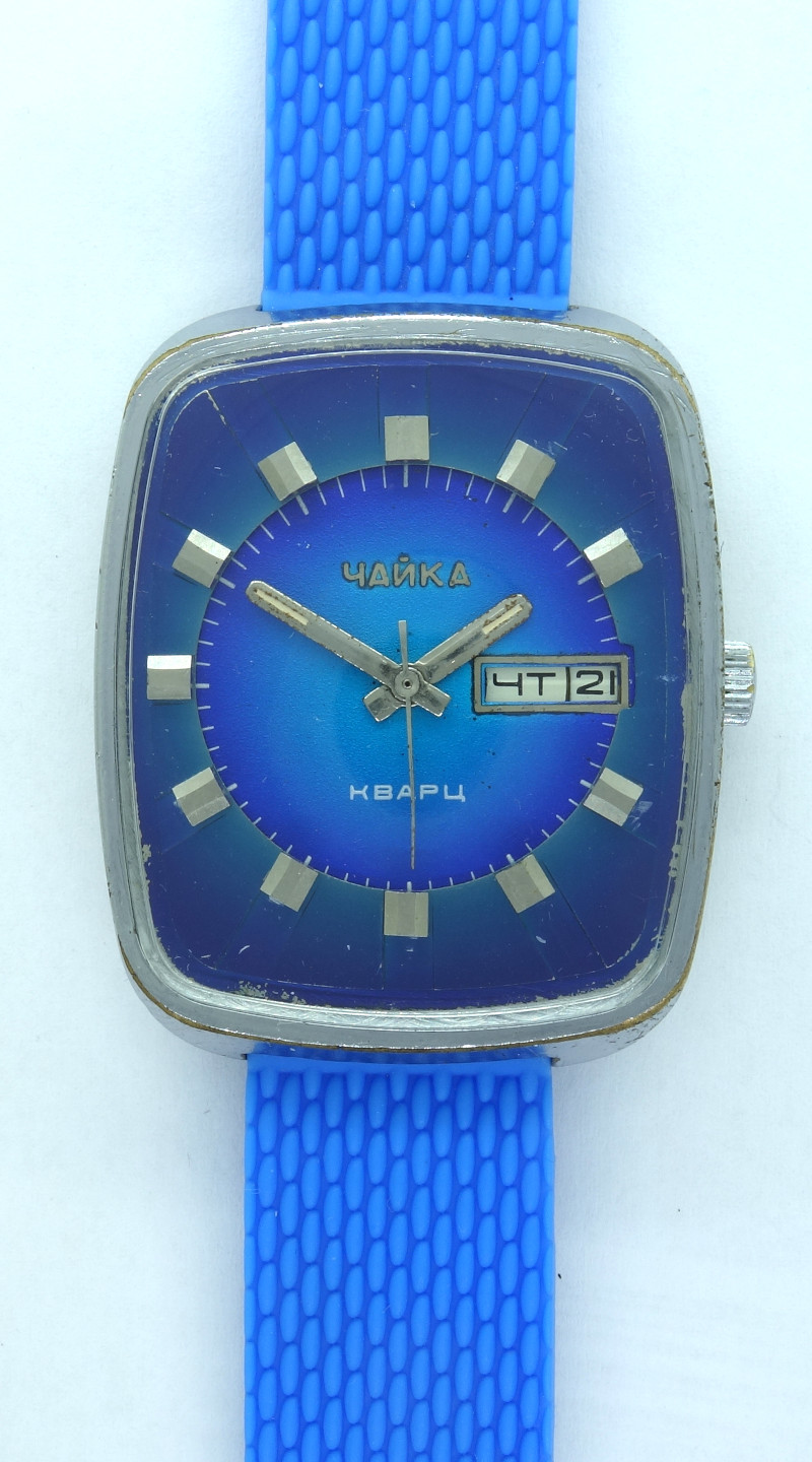 The first russian quartz movement with analog time display, the Chaika 3050 KR, was made in a cooperation of several russian manfacturers (each of them provided different parts/modules) between 1977 (first series; the mass production started in 1978) and around 1983.