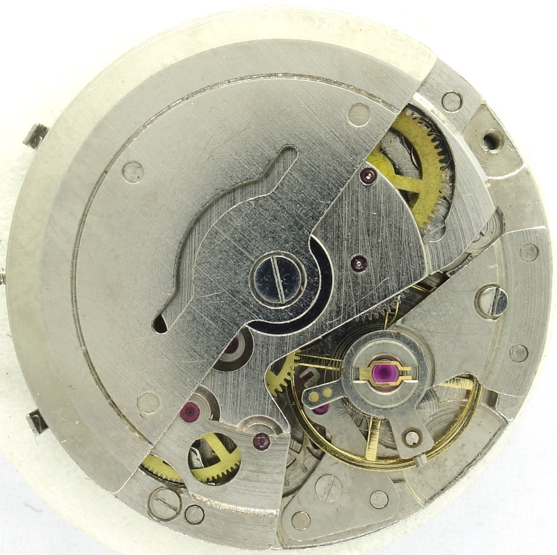 Not only the gear train for the time display, but also for the selfwinding mechanism is located entirely on the base plate and under a single bridge. This is really not service-friendly.