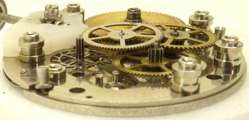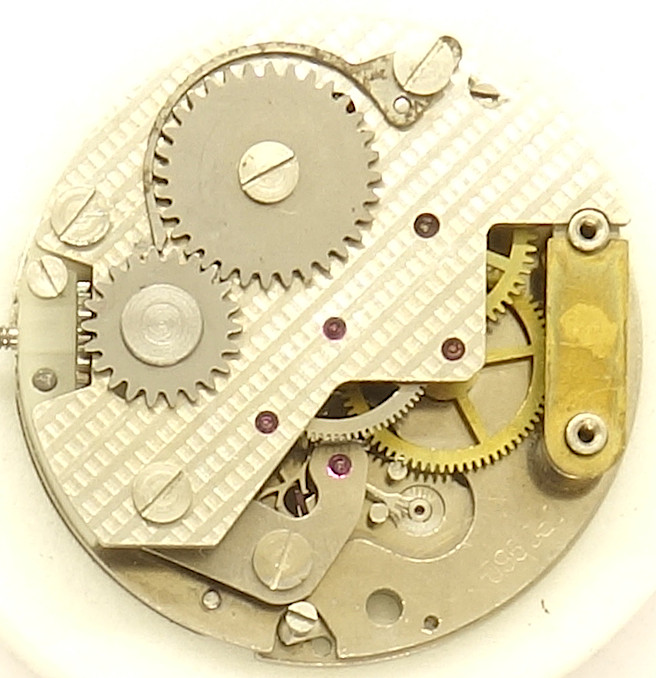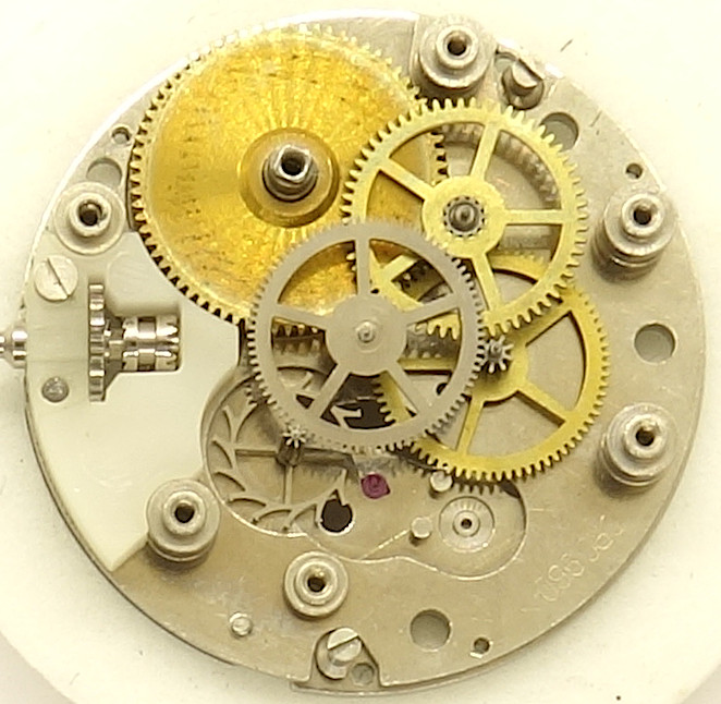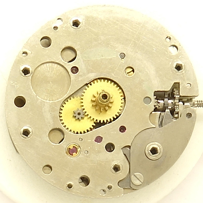 The center seconds wheel bearing on the dial side is a bit odd, since it is not fixed, but only laid on.