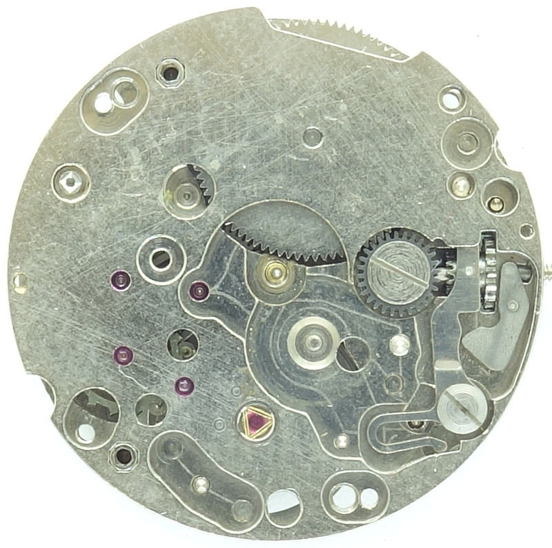 The date setting wheel is driven by the hour wheel. It has got a fixed finger for switching the weekday back and forth, as well, as a moveable finger to advance the date. By setting the time back to 20h and forth, the date can be corrected semi-fast.
