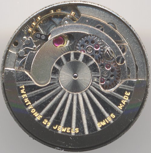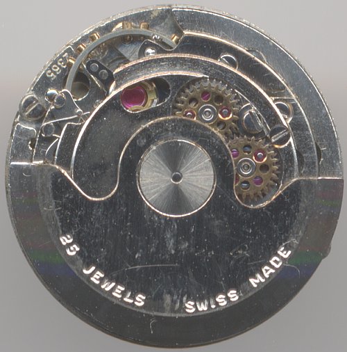 1952, ETA lauched their ladies’ selfwinding movement line with the base caliber 2365, which was offered in different versions, with Glucydur balance, which nickel balance, with 21 or 25 jewels. On the version with 25 jewels, the four additional jewels are not real functional and only put into the brass wheels of the selfwinding mechanism.