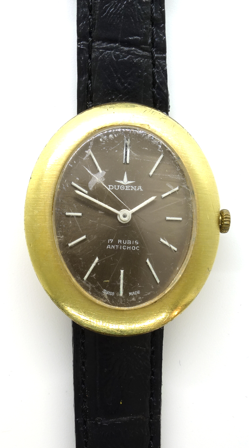 The ETA 2512, with a diameter of 7 3/4 lignes, is already among the larger windup movements, especially those that could only display hours and minutes. Dugena gave it the internal designation Dugena 3301.