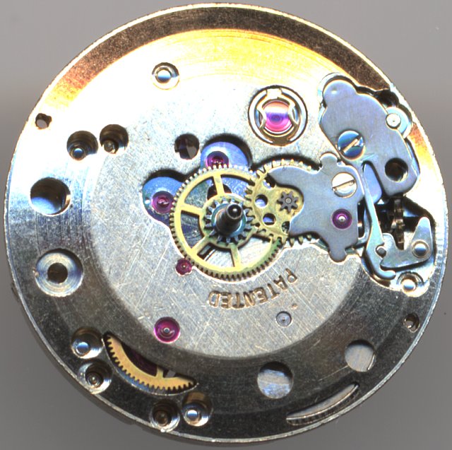 The ETA 2540 is not much different to the later 2660 series, but one difference, which is important for the service is, that the setting lever on the 2540 is secured by a screw, while on the 2660 it is fixed by a spring. Another difference is the dial securing: On the 2540, two lateral screws were used, on the 2660, there were two quick-fixating mechanisms on the movement plate.