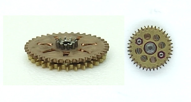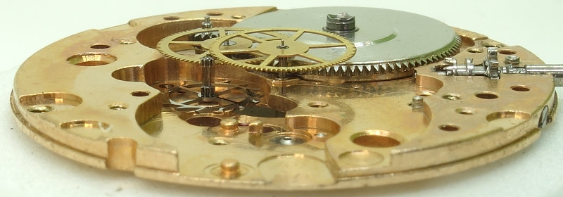 The disadvantage of the ETA selfwinding system is, that the automatic gears are not detatched on manual wind, which means, that both pawl changer wheel turn with very high speed.