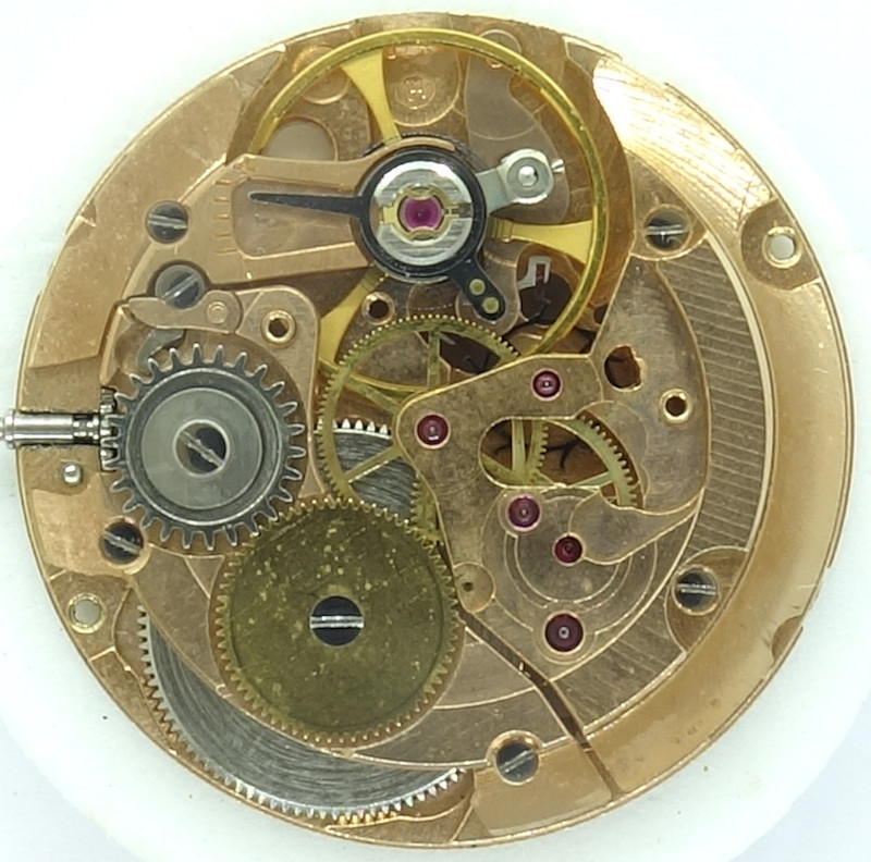 The base caliber was the ETA 2620, which had an axle beared oscillating weight. The version with the “R” suffix, the ETA 2620R however, had got a ball-beared rotor.