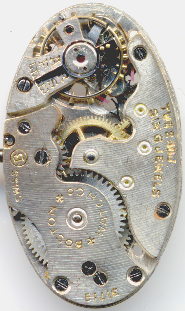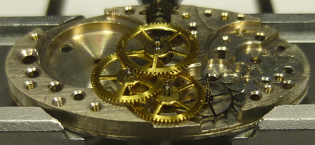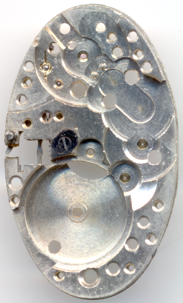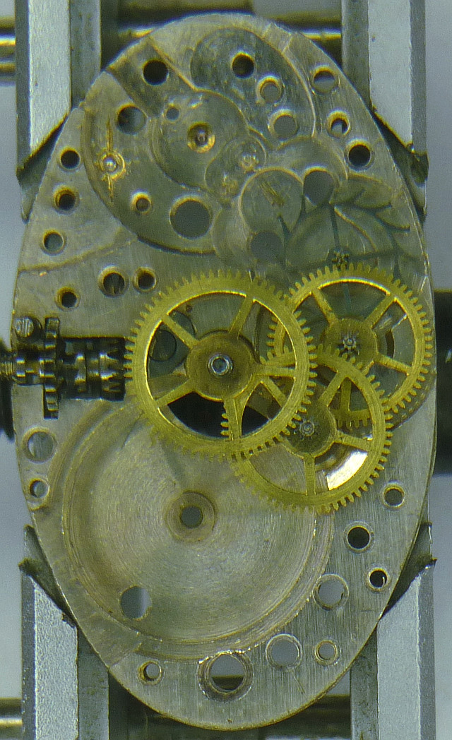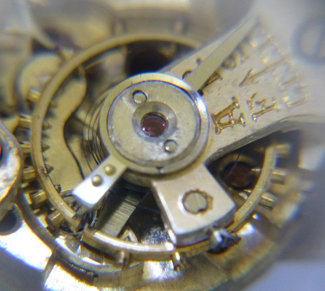 The silver colored export version did not contain jewel bearings, besides for the balance. On the original swiss version had jewels on all bearings, except on the minute wheel bearing.