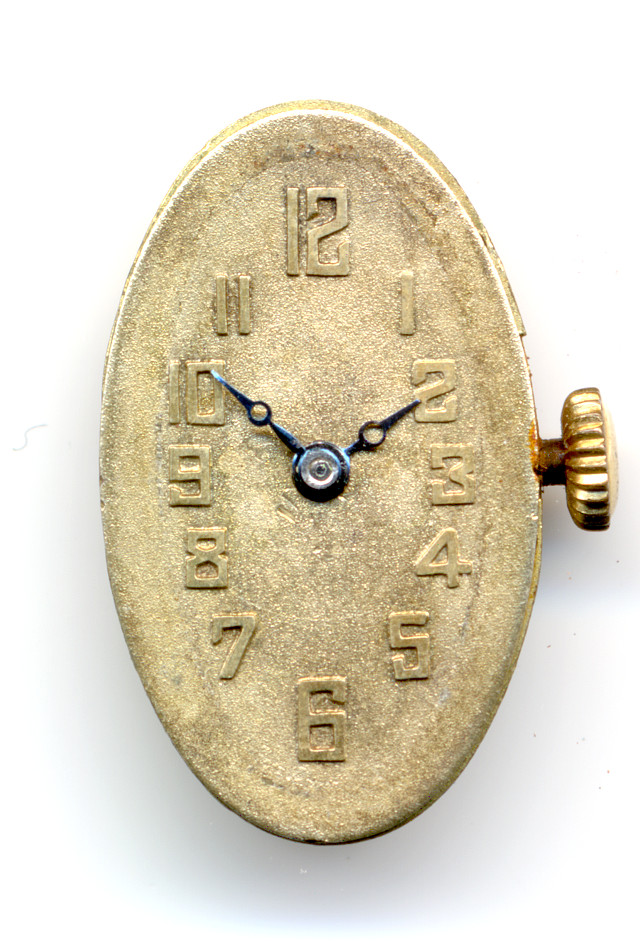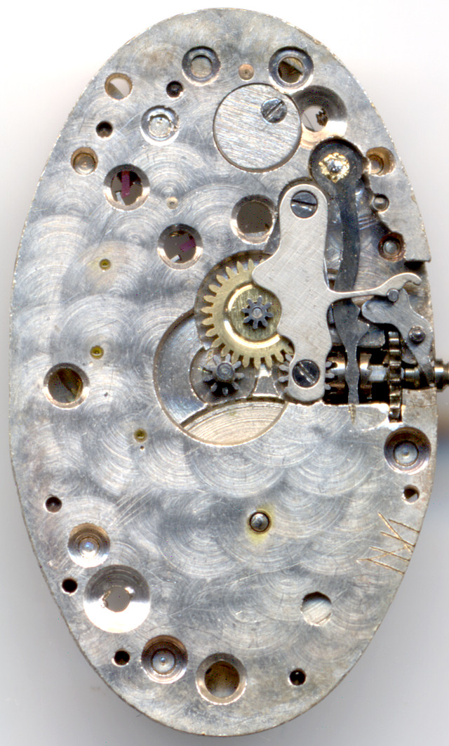 A representative of the further uncommon ellipse shaped ladies’ watch movements in the Felsa 194, which was probably made in the 1930ies.