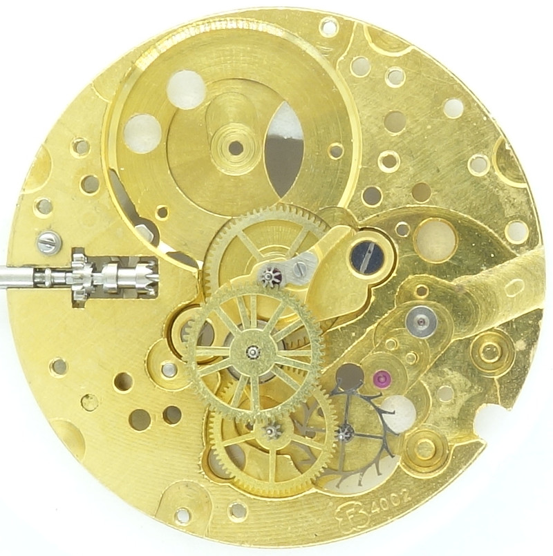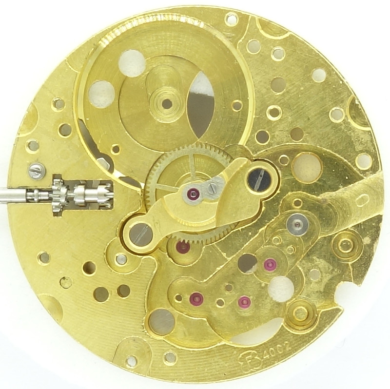 Without selfwinding module, the Felsa 4002 is equal to the Felsa 4012. You can nicely see, how the engagement of the selfwinding module with the crown wheel happens at position 8:30.