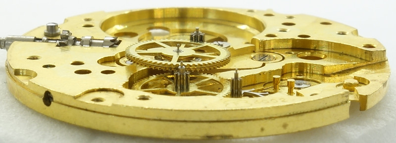 The directly driven center minute wheel is beared under an own bridge. This kind of construction was no longer really cutting edge technology, but it was proven for decades.
