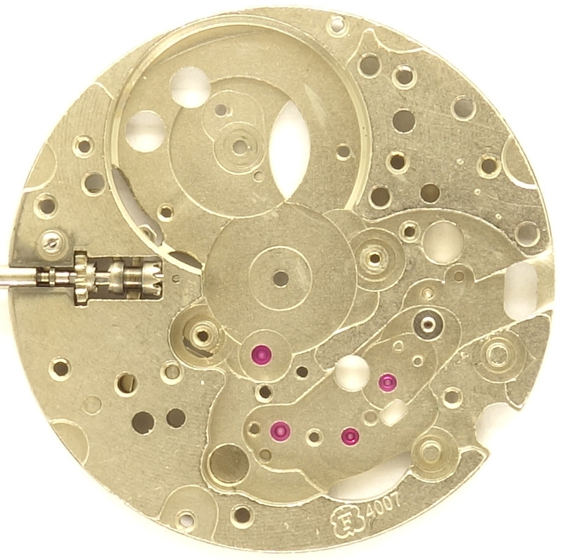 The Felsa 4007 is the version with date indication and semi-fast quickset mechanism. Compared with the caliber 4002, the selfwinding mechanism was reworked a bit.