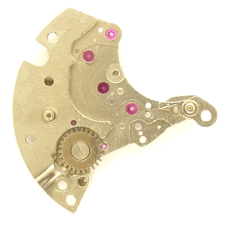 Unlike the Felsa 4002, the gears of the selfwinding mechanism are mounted directly into the gear train bridge, and no longer in an own, detachable module.