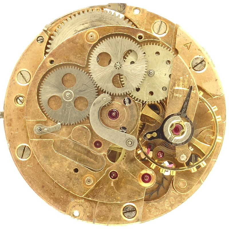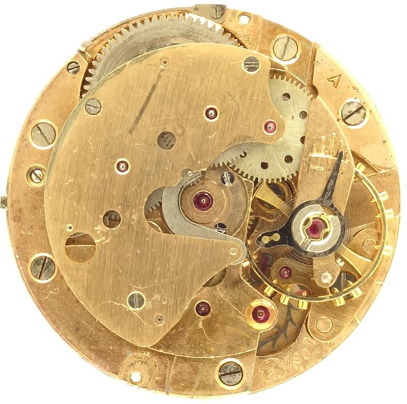The Felsa 790, here in red-golden color, debuted in 1953ies and is compareatively rare, since Felsa produced it in lower quantities (only 69.500 items) than the caliber 1560, which was made at the same time.