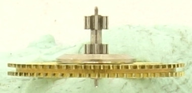 The final wheel is, as expected, the escape wheel, made of steel. It is blocked by a swiss pallet lever escapement.
