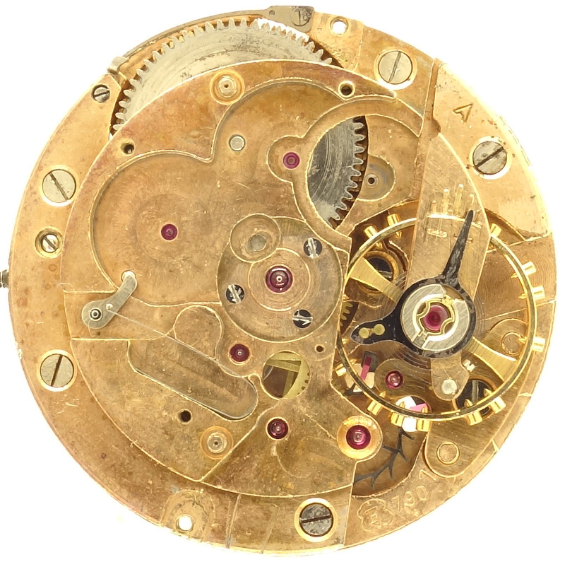 On the dial side, you see the yoke winding system, the Incabloc shock protection and a partial minute scale, which was used to adjust the movement prior to casing.