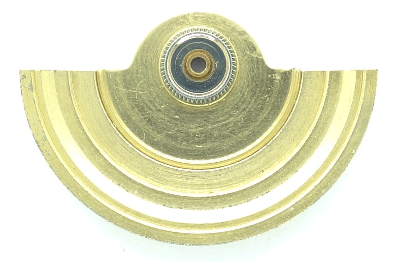 The oscillating weight is a half-circle. It it attached with a spring washer to the axle.