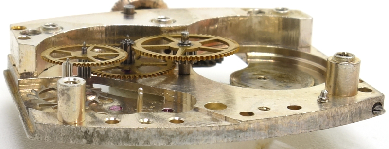 The biggest difference is that the gear train bridge is now supported by three pillars and features a semicircular cutout around the balance wheel.