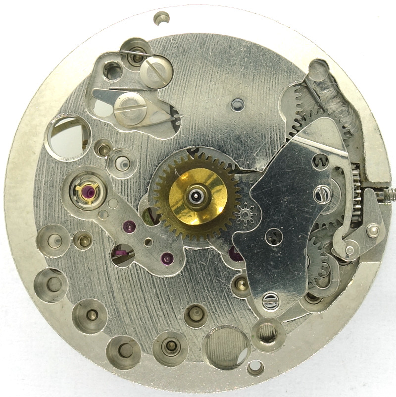 The minute wheel is followed by third wheel, directly driven center seconds wheel and escape wheel.