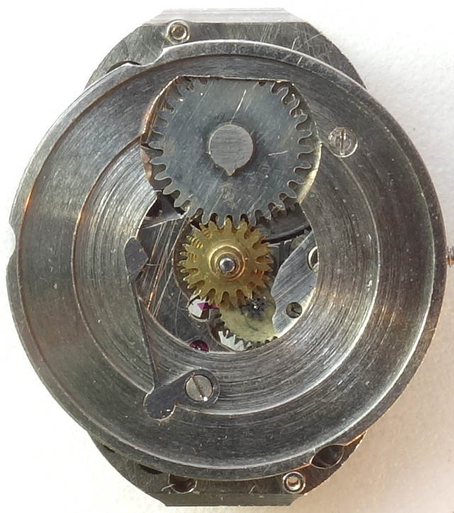 The gear train consists of a large directly driven center minute wheel, followed by two tiny wheels, the third and fourth wheel, and finally the escapement wheel. It’s hardly possible to construct an even smaller gear train.