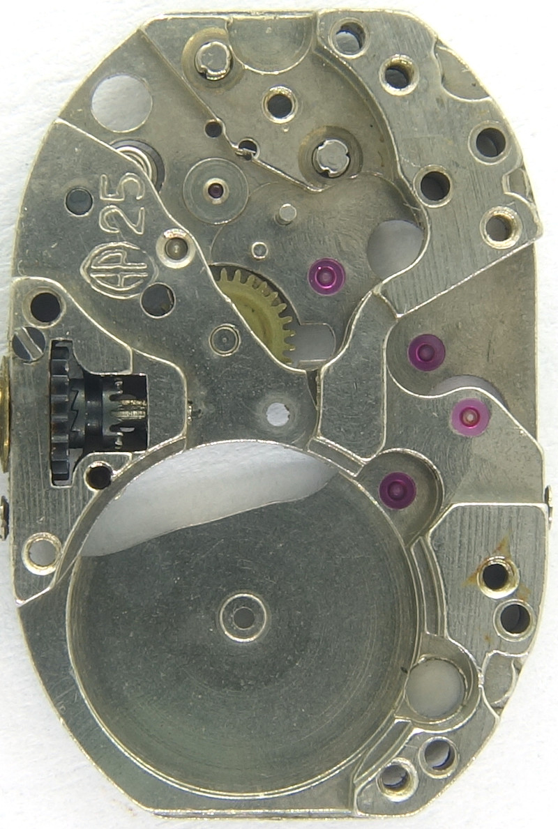 During its long production run (in 1976 it was listed as “discontinued”), at least the balance assembly was updated from a non shock protected screw balance to a shock protected anular balance without screws, and the one fixed hairspring stud was changed to a moveable stud.