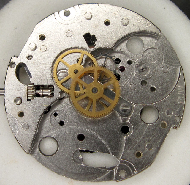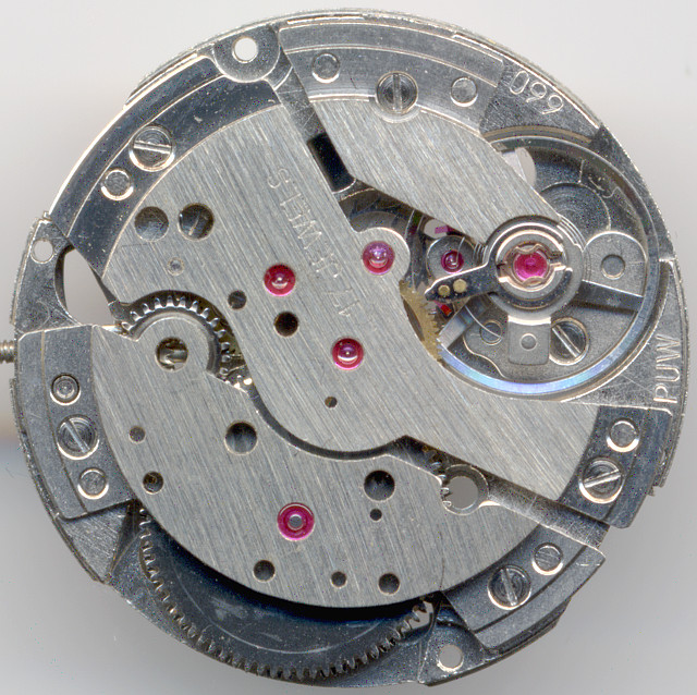 The PUW 660 shown here is the bast movement of the fifth and final caliber family, which consisted of manual wind movements (calibers 660-664) and of selfwinding movements (calibers 1660-1664). The base construction is still the same as on the caliber family 260, which was launched in 1960.