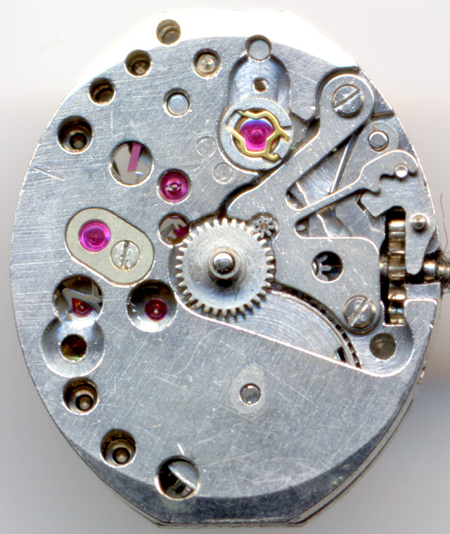 Everything else remained unchanged, the beat rate (18000 A/h), the number of jewels (17, with non ruby-beared minute wheel and cap jewels for the escapement wheel bearings) and the escapement system (swiss pallet lever).