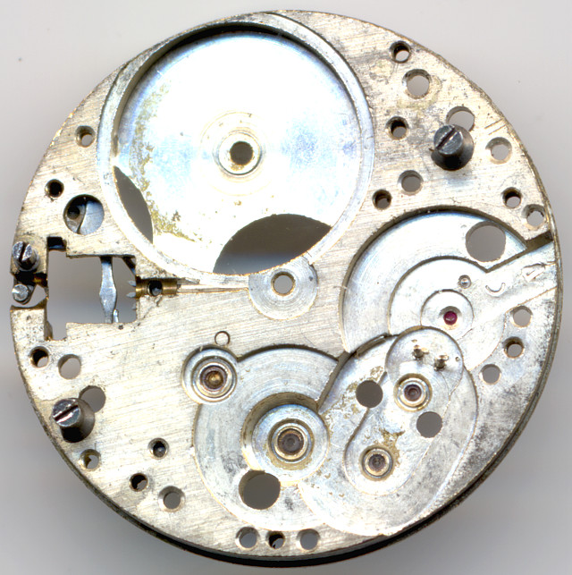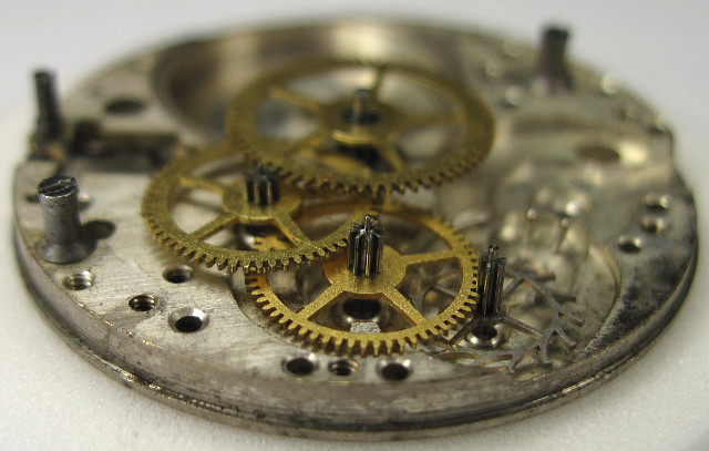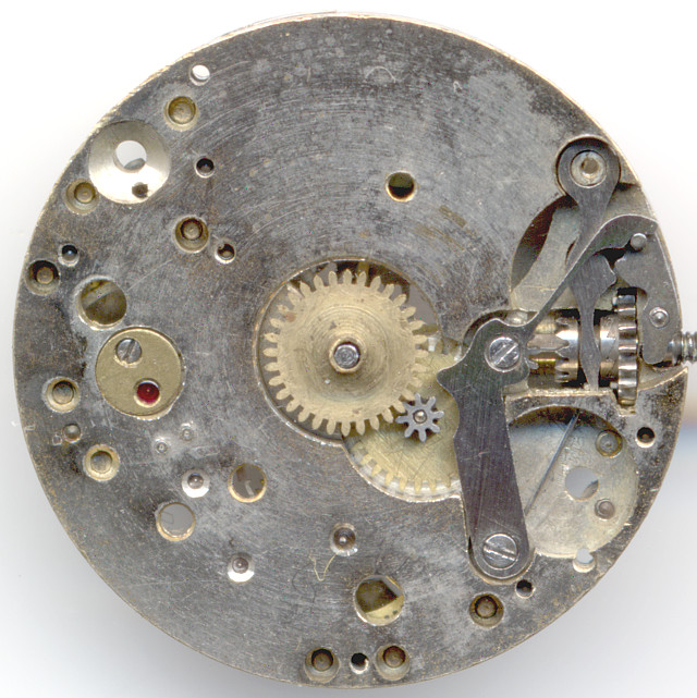 In the 1940ies, this gear train was state of the art: Directly driven center minute, third wheel, fourth wheel, escapement wheel.