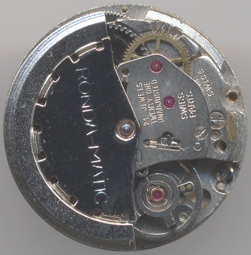 This Ronda “Ronda-Matic” selfwindig movement, caliber 4139, was made in the warly 1980ies. It was part of the caliber family 413x/423x/433x/443x, which was produced in different sizes, ranging from 8 3/4 up to 12 lignes, and was available as handwind and selfwindig versions. The calibet 4139 winds in one direction and uses a swiss lever movement, although it is signed as “RL”, which normally stands for Ronda pin-lever movements.